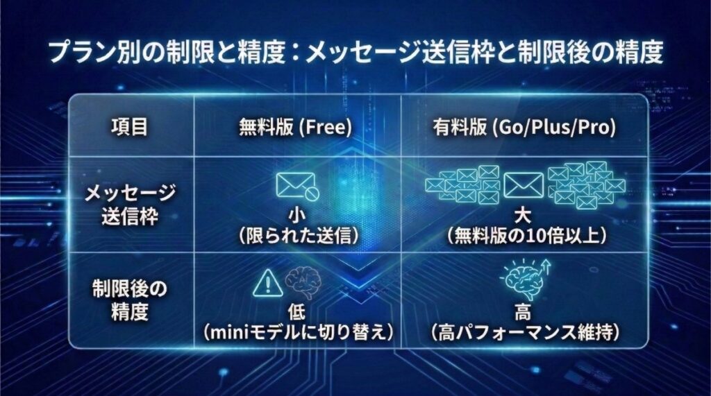 まずは各プランの制限と新機能を正しく整理することが、賢くAIを使いこなすための第一歩となります。