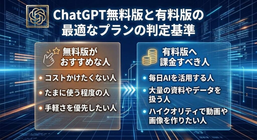 ChatGPT無料版と有料版の最適なプランの判定基準