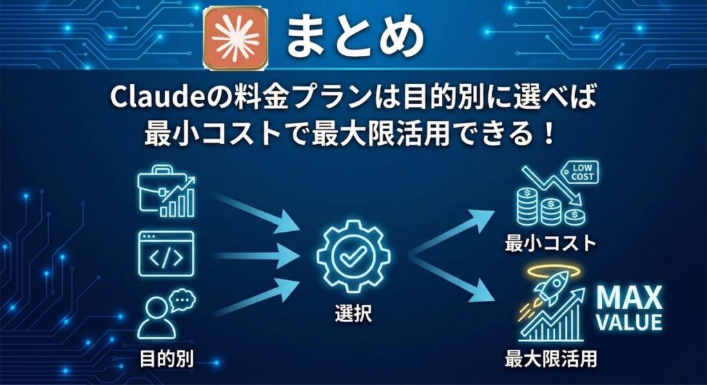 まとめ:Claudeの料金プランは目的別に選べば最小コストで最大限活用できる!