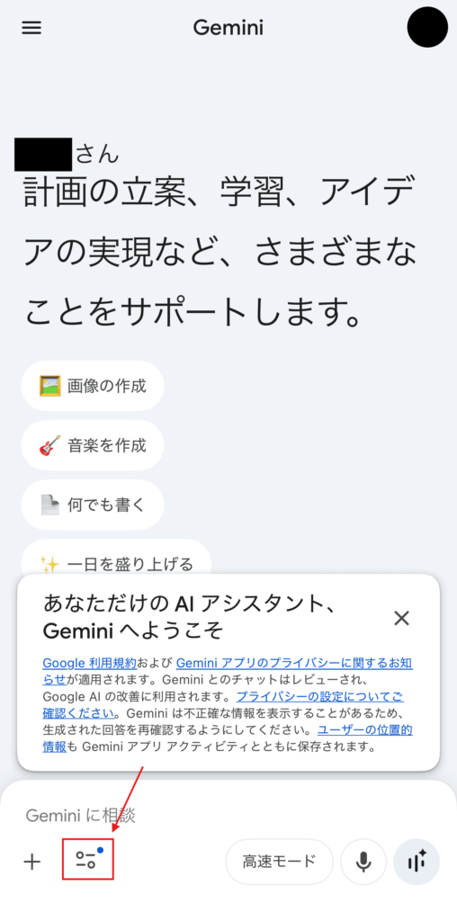 画面下部のチャット欄にあるツールメニューをタップし、「画像の作成」を選んでください。